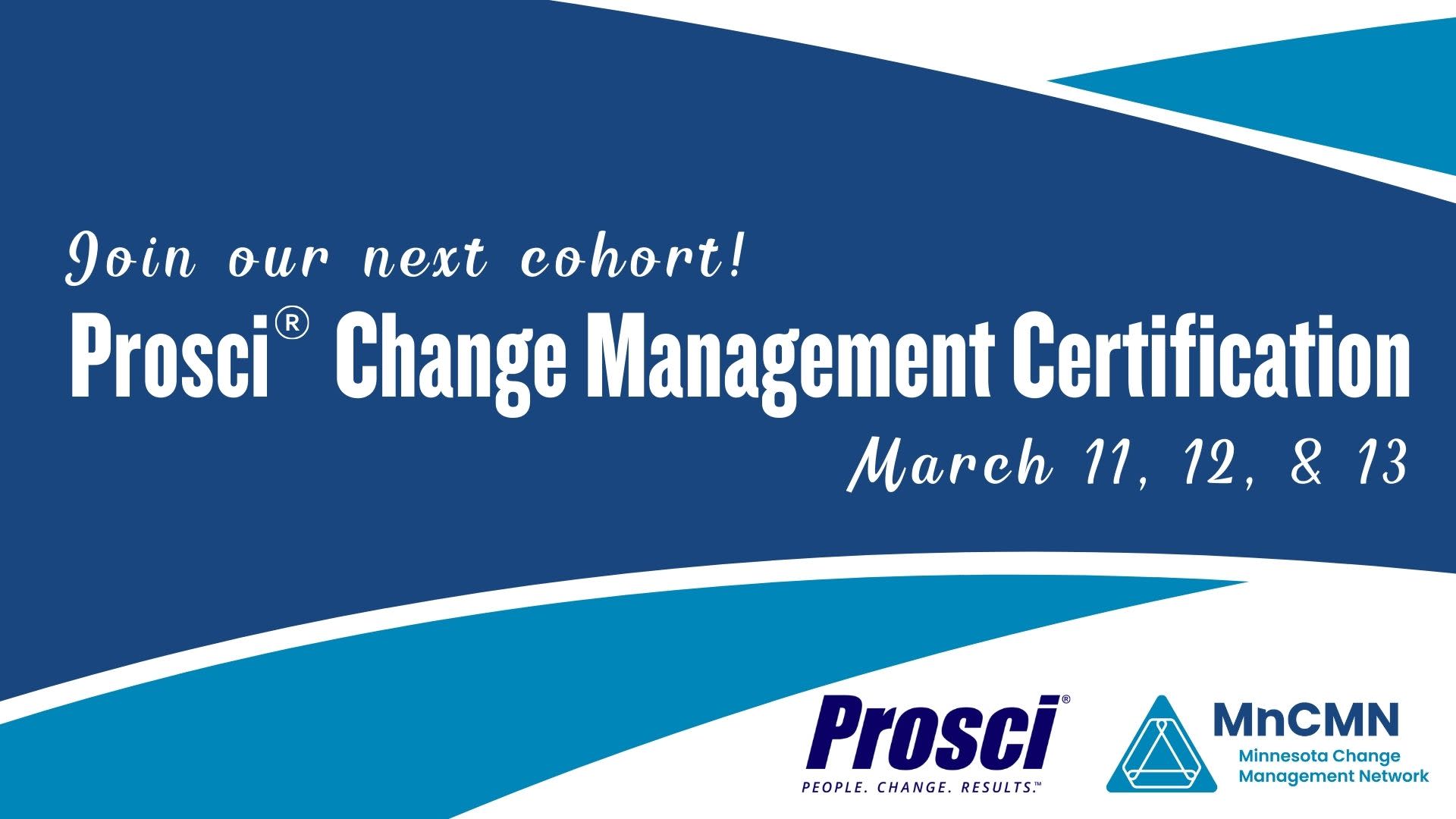 Earn your Prosci® Change Management Certification over the course of just three days in our next cohort. There you can join your fellow MnCMN peers in gaining the skills, framework, and tools necessary to manage change at all levels.