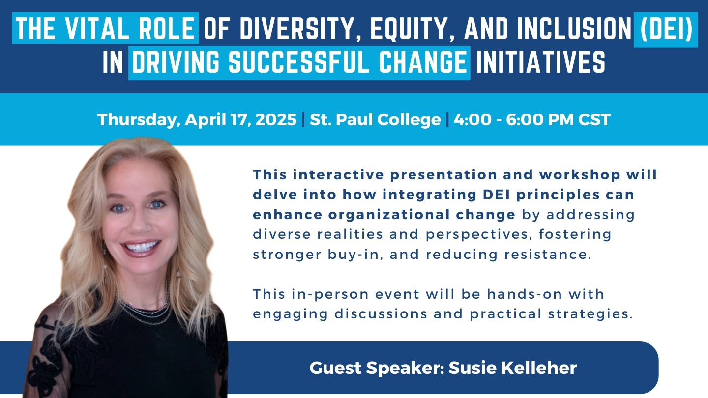 Through hands-on exercises and engaging discussions, attendees will learn practical strategies to apply DEI principles in their change management efforts. The session also emphasizes leveraging personal experiences and identities to build meaningful connections that support inclusive change. Come ready for deep self-reflection and impactful group conversations that will leave you inspired and equipped to drive transformative change. We are excited to bring you this important topic that deserved to be rescheduled and not missed!
