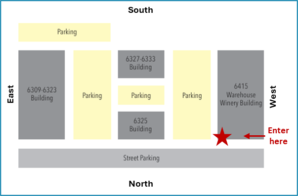 In the Business District Parking Lots: The highlighted areas are available parking lots on the East side of Warehouse Winery.